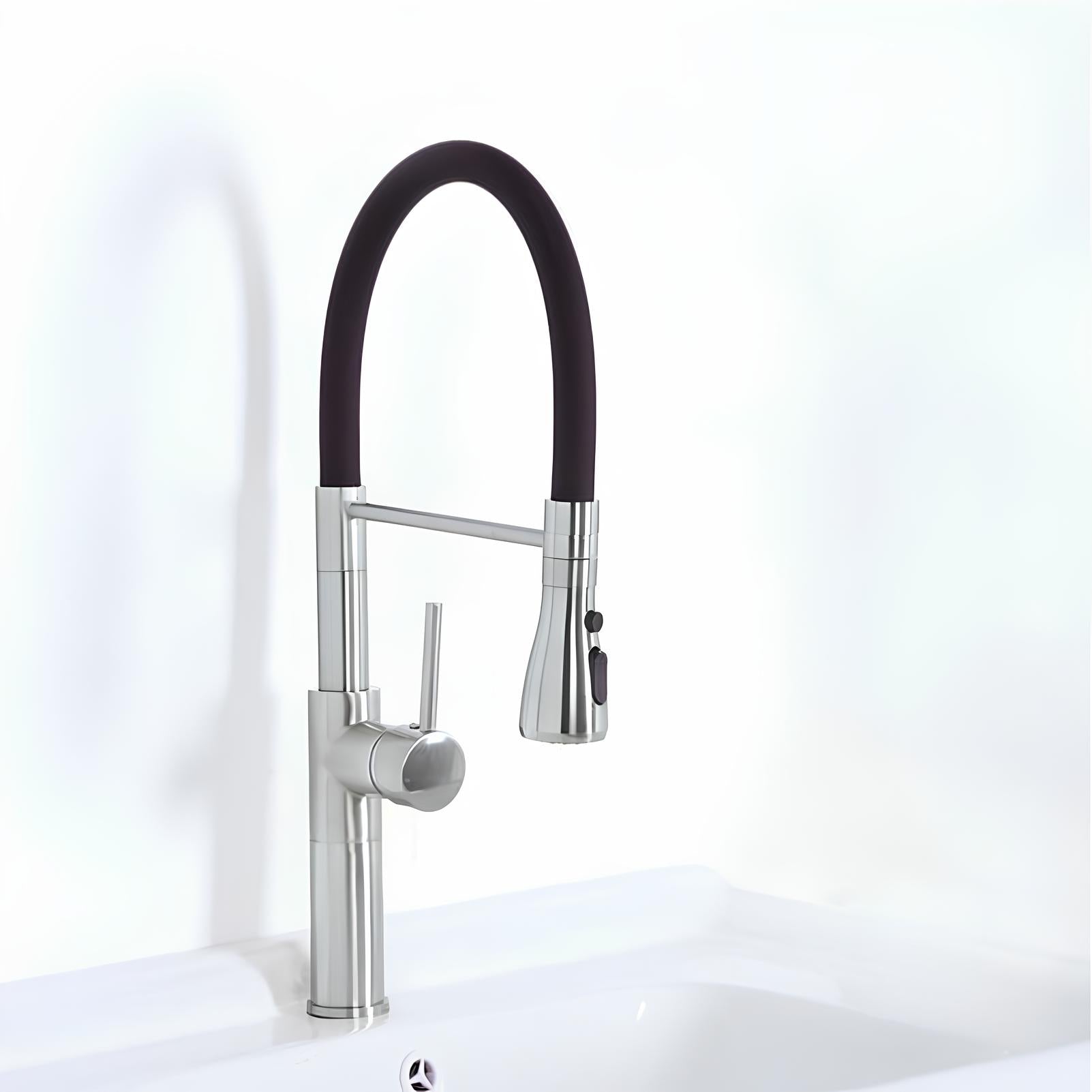 Torneira Cozinha Style, modelo único e imponente, com 52cm, linhas modernas, mangueira toda emborrachada e toda praticidade para seu dia a dia. Possui o corpo extensível que chegará a todos os cantos de sua cuba e dois tipos de jato (Arejado ou Ducha/Chuveirinho) indispensáveis na higienização dos alimentos ou louça. Monocomando com Água Quente e Fria.