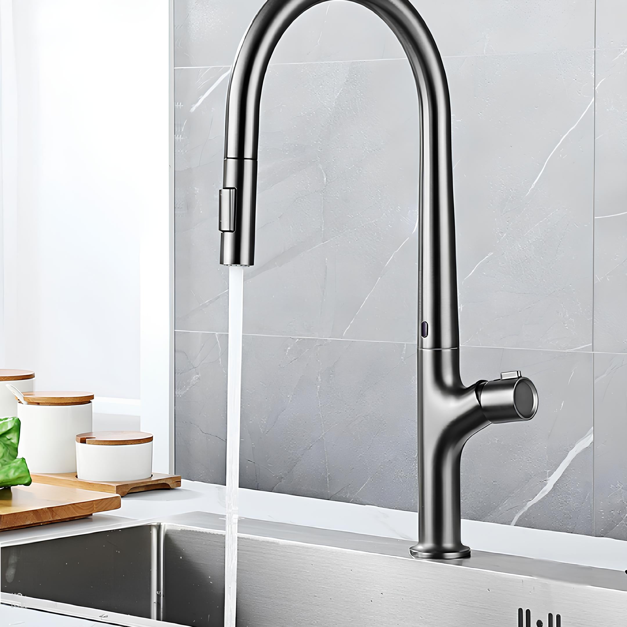 Torneira Tech, disponível em 03 cores, possui um design minimalista e exclusivo. Ela veio para revolucionar e deixar sua Cozinha ou Área Gourmet do jeito que sonhou, toda facilidade do acionamento por presença para ligar ou desligar o fluxo de água, alimentado com um dispositivo que vão 04 Pilhas Comuns. Monocomando com Água Quente e Fria.